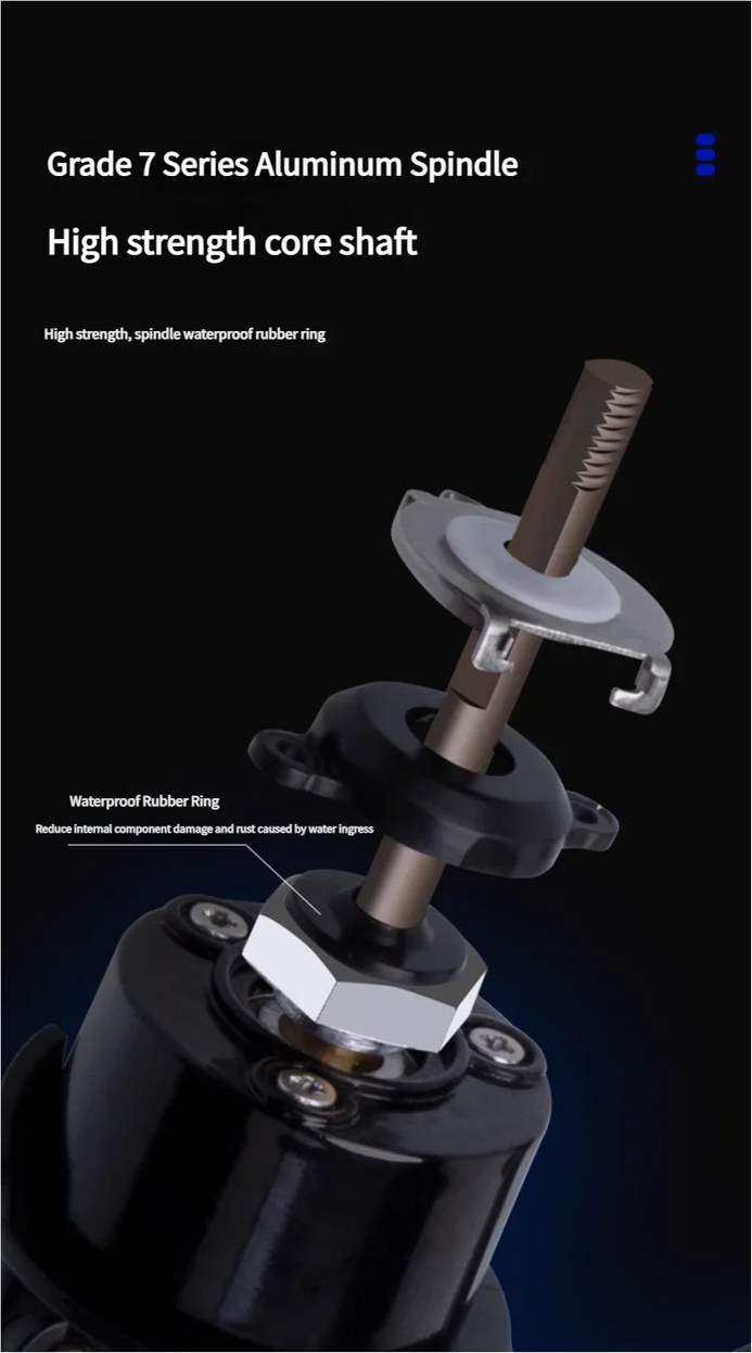 7. Corrosion-Resistant Core – 7-series aluminum main shaft, reinforced mandrel, and waterproof seals prevent rust from water ingress.