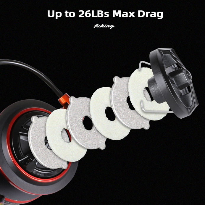 ●Powerful Drag System: 26lbs/12kg max drag, powerful and strong drag system help anglers to fight with trophy fishes.