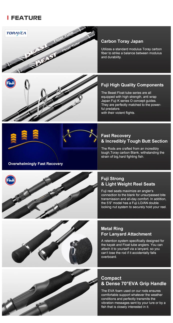 If you fish sitting down in a float tube or kayak, then you've probably had the butt of your rod get caught on your PFD or shirt before...So it's preferable to use rods that are space-saving, generally short, and have a compact handle in order to offer maximum maneuverability when casting, moving lures and fighting. Built In Single-Section With Removable Handle