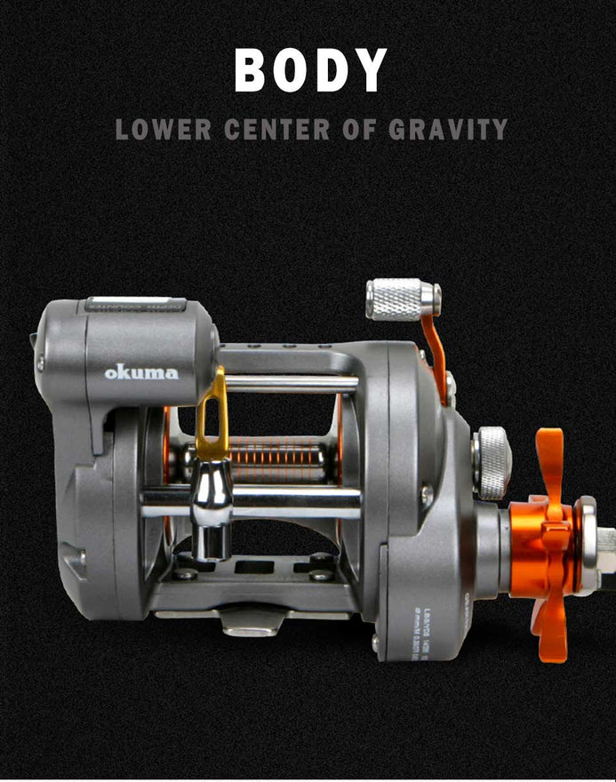 Okuma Cold Water line counter reels are constructed upon a powerful star drag foundation including heavy-duty machine cut brass gears, dual anti-reverse systems and full Carbonite drag system with up to 7kg of maximum drag output, Okuma anti-fogging Clear View Technology. The reels are available in both right and left hand retrieve.