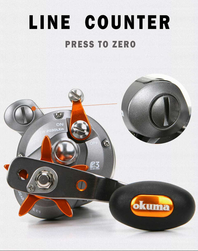 Okuma COLDWATER Line Counting Baitcast Reel 5:1:1 2+1BB 7Kg Max Drag