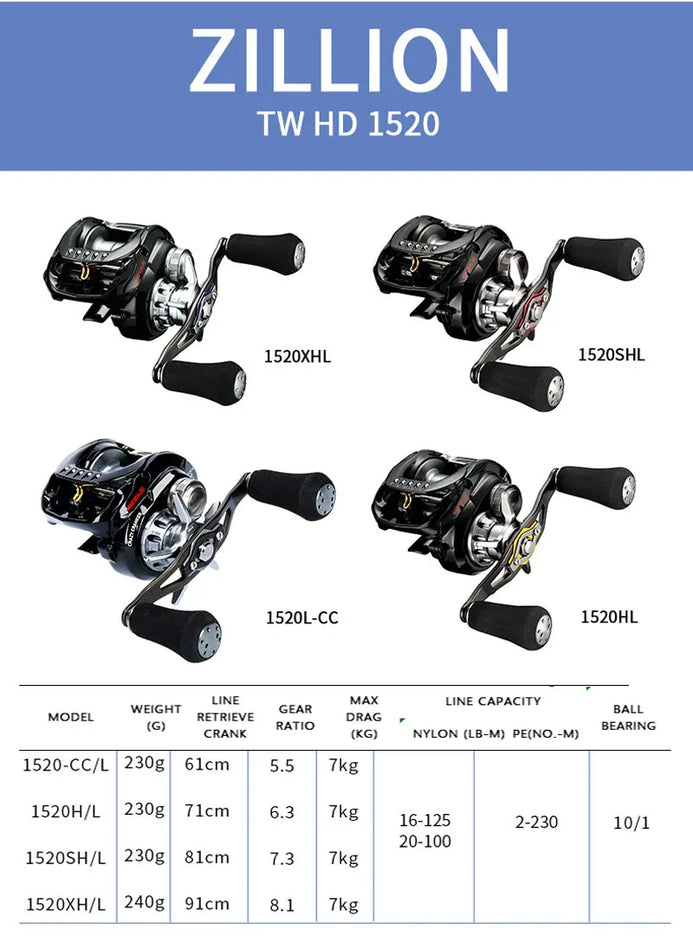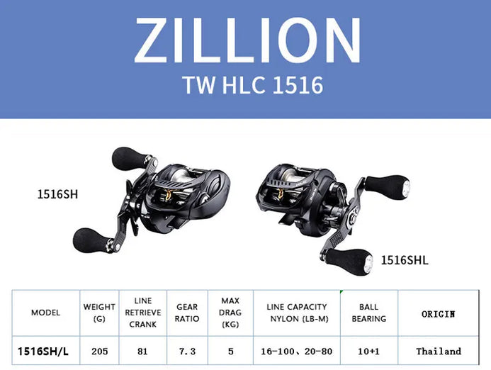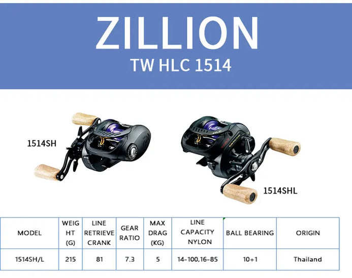 Daiwa Zillion TW HLC (Hyper Long Cast) Baitcasting Reel 10+1BB 5-7Kg Max Drag 5.5 6.3 7.3 8.1