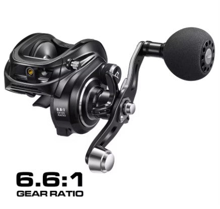 5.[Multiple Choices] Alijoz 300 baitcast reels come in your choice of 6.6:1 or 8.1:1 gear ratio options with your choice of grey and gold or midnight black options. This tournament ready baitcasting reel offers single power-handle and double-handle designs. Upgraded single-handle models feature added counterweights to match the balance of double-handle reels.