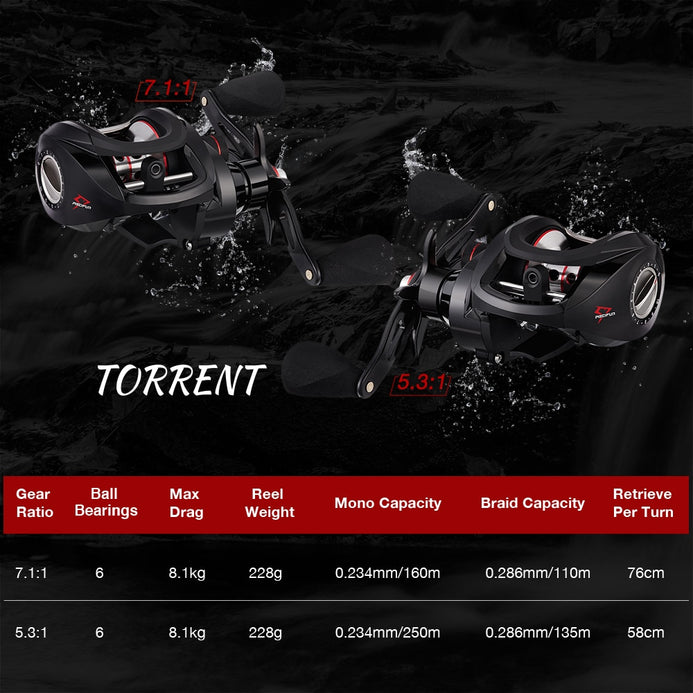 Piscifun Torrent Baitcasting Reel 7.1:1 5.3:1 6BB 8.1Kg Max Drag