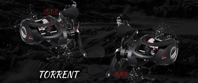 Introducing the Piscifun Torrent Baitcasting Reel, with gear ratios of 7.1:1 or 5.3:1 and 6 ball bearings. Experience smooth and effortless casting with this high-performance reel, perfect for any fishing adventure. Dominate the water with precision and control.