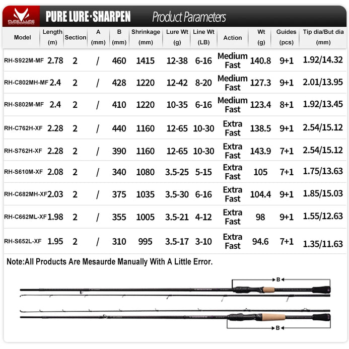 PureLure SHARPEN Spinning/Casting Rod XF/MF Action 2PC 1.95m-2.78m