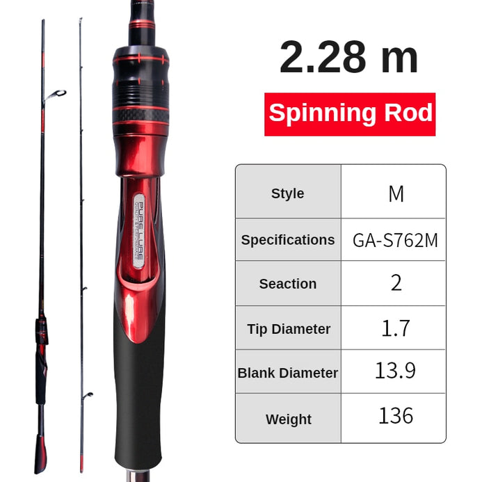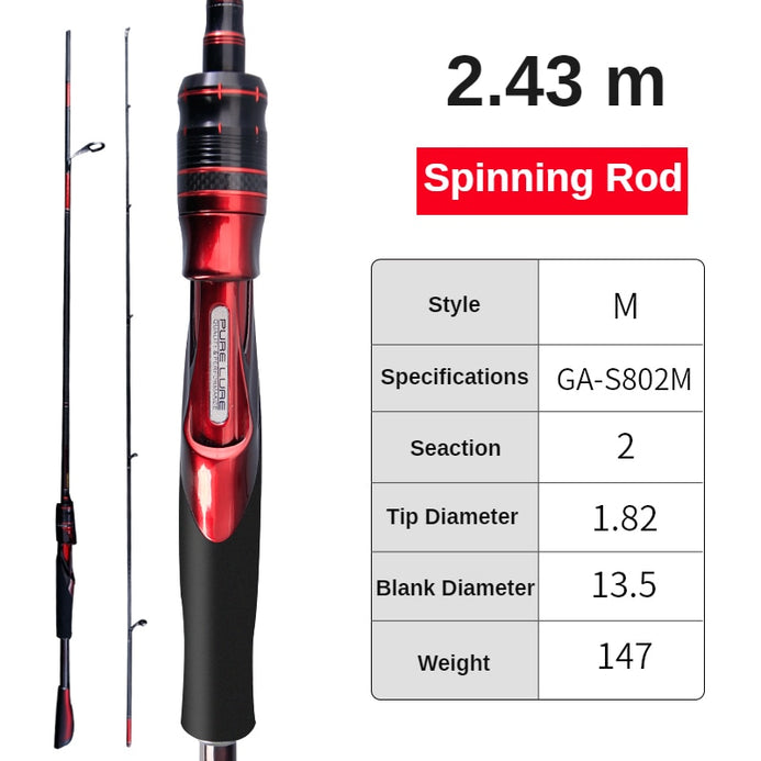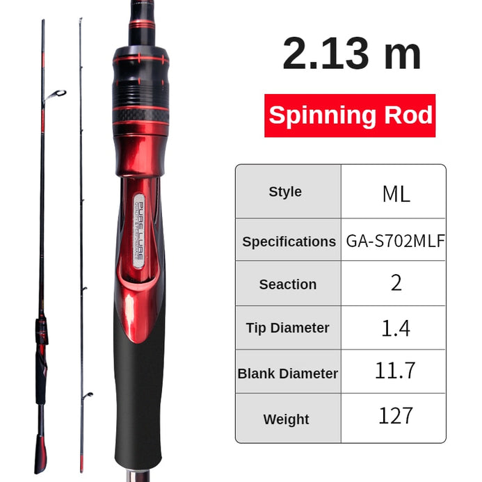 PureLure Grupla 1.98-2.51m 2PC Ultralight L/M/ML Fast Spinning/Casting Rod