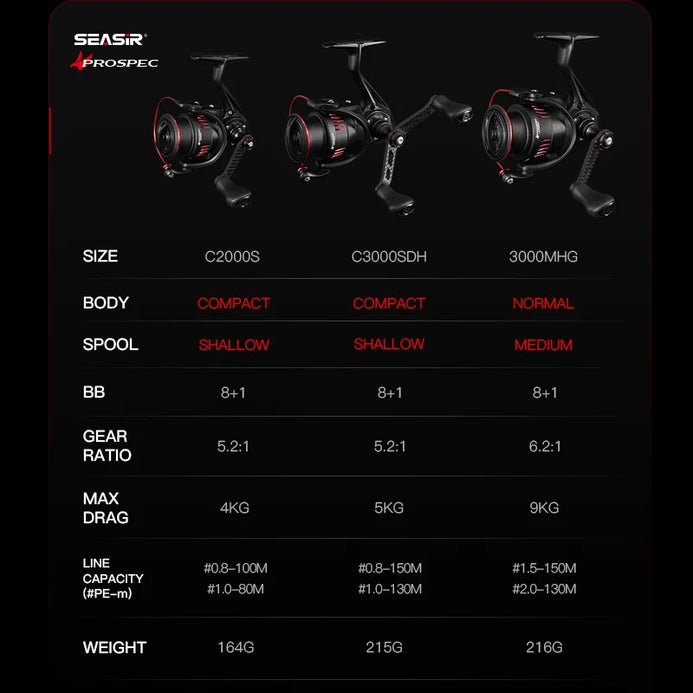 Seasir P-Series Prospec Carbon Spinning Reel 8+1BB 5.2:1/6.2:1