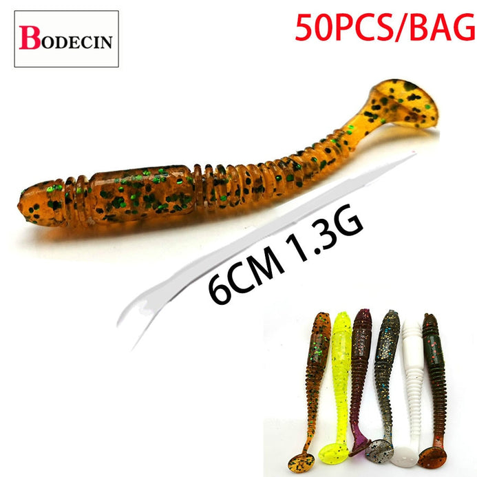 Bodecin T-Tail Shad Bait 6cm/1.3g 50Pc Set