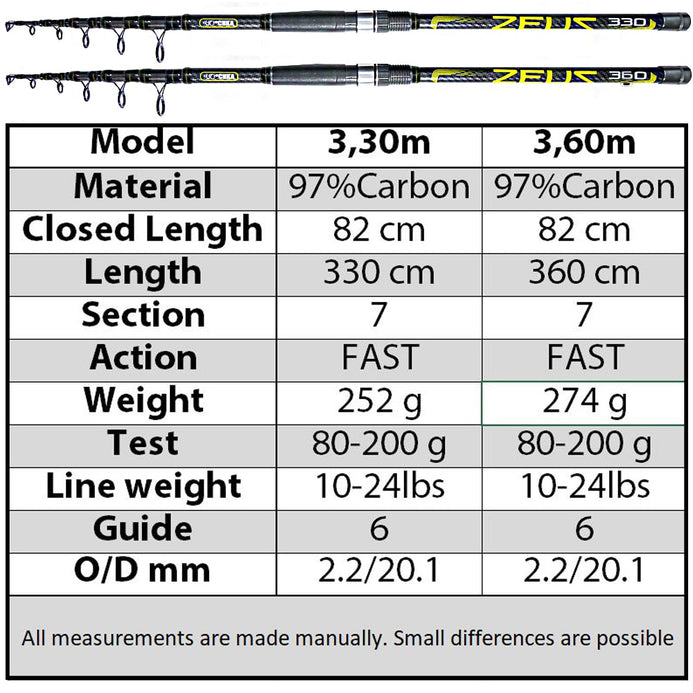 UDOCHKA Zeus 3.3m/3.6m Telescopic Carbon Spinning Fishing Rod