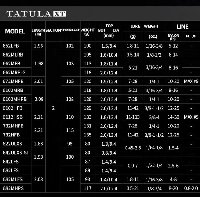 Daiwa TATULA XT (2024) Spinning/Casting Bass Rod Fast Action 2PC 1.88m-2.21m