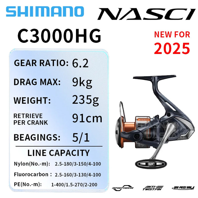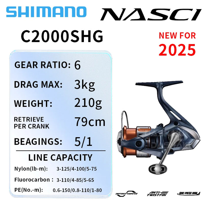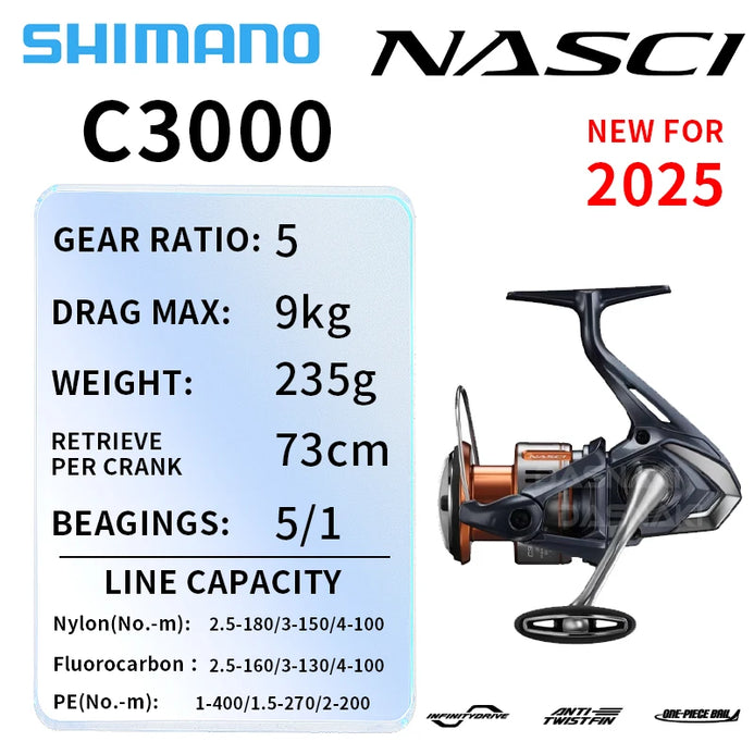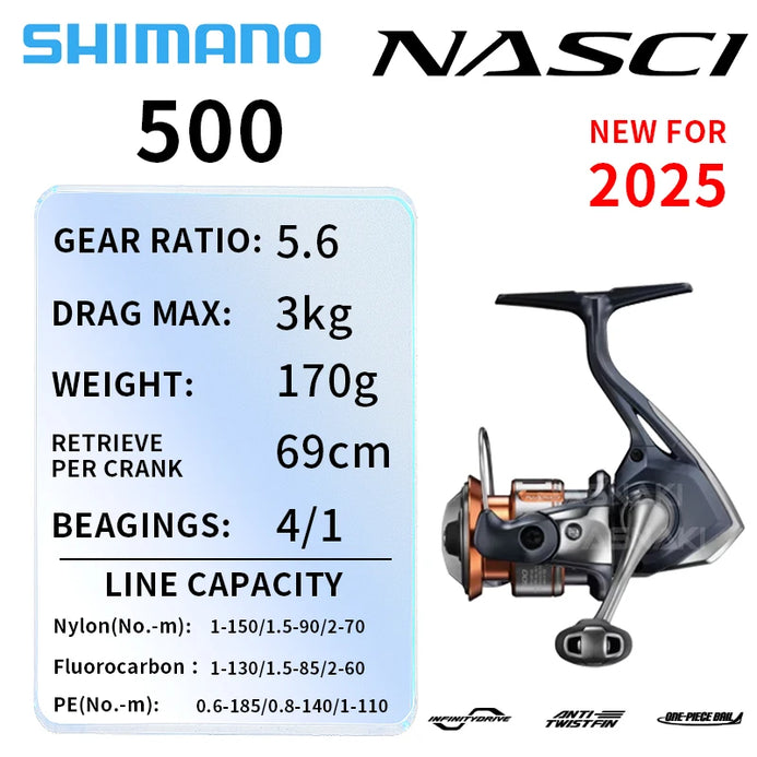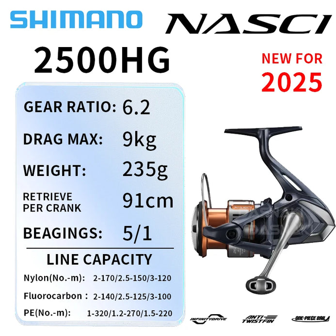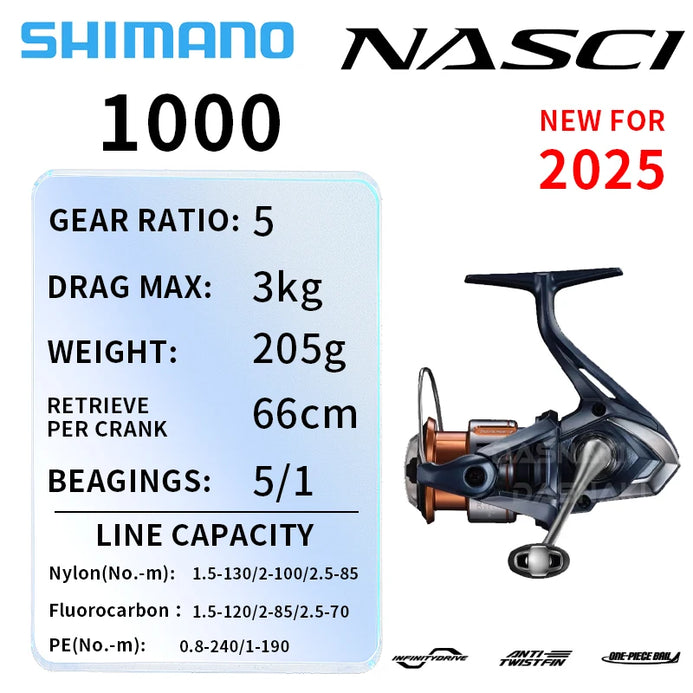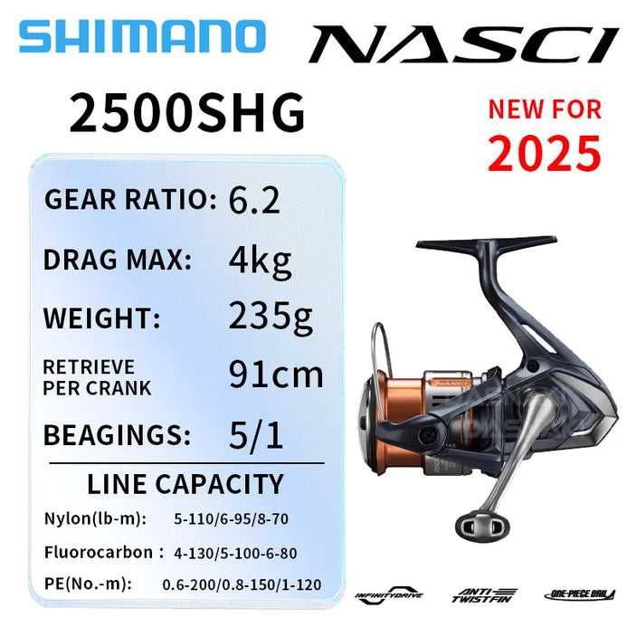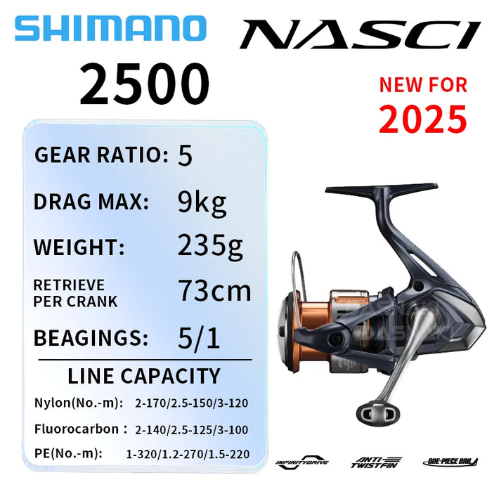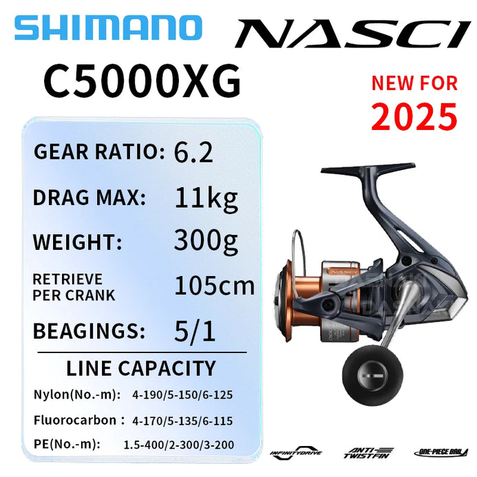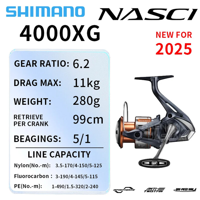 Shimano Nasci (2025) Spinning Reel 5+1BB Max 11kg Drag X-Ship