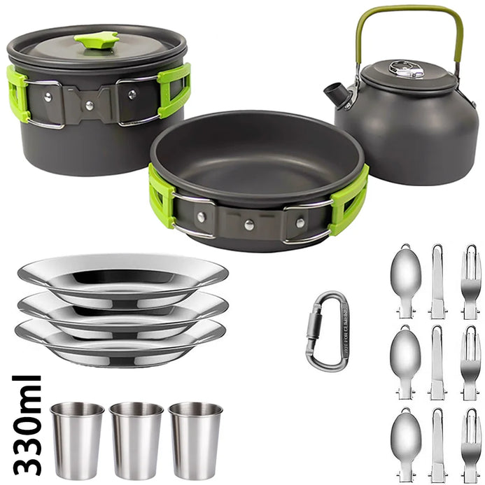 The camping cookware is made of high-quality aluminum materials, and the pot body is oxidized. This gives the cooking set excellent thermal conductivity, enhancing durability against high temperatures and friction. The inside of the cookware is non-stick and easy to clean after use.