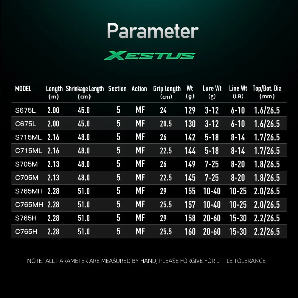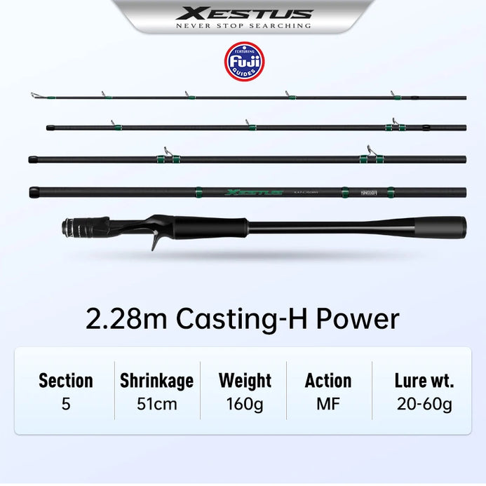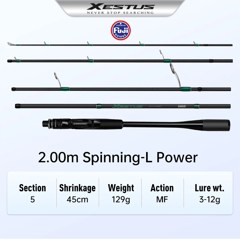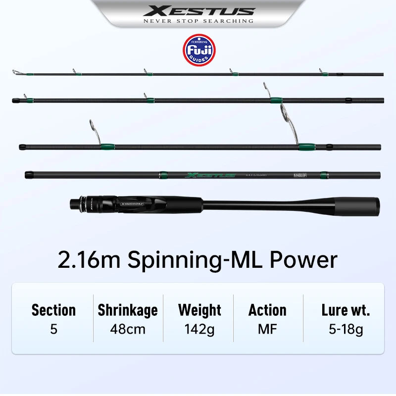 Kingdom Xestus Casting/Spinning Travel Rod 5PC 2m 2.1m 2.16m 2.28m MF Action