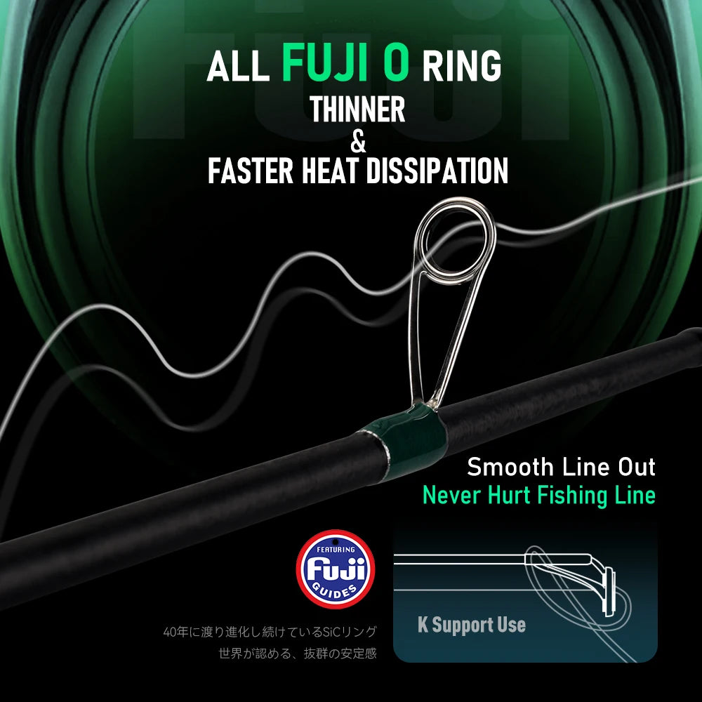 5. A full set of Fuji O-ring guides ensures fast heat dissipation and smooth line release, allowing for precise casting without damaging the line! The K-shaped bracket prevents tangles, ensuring instant results!