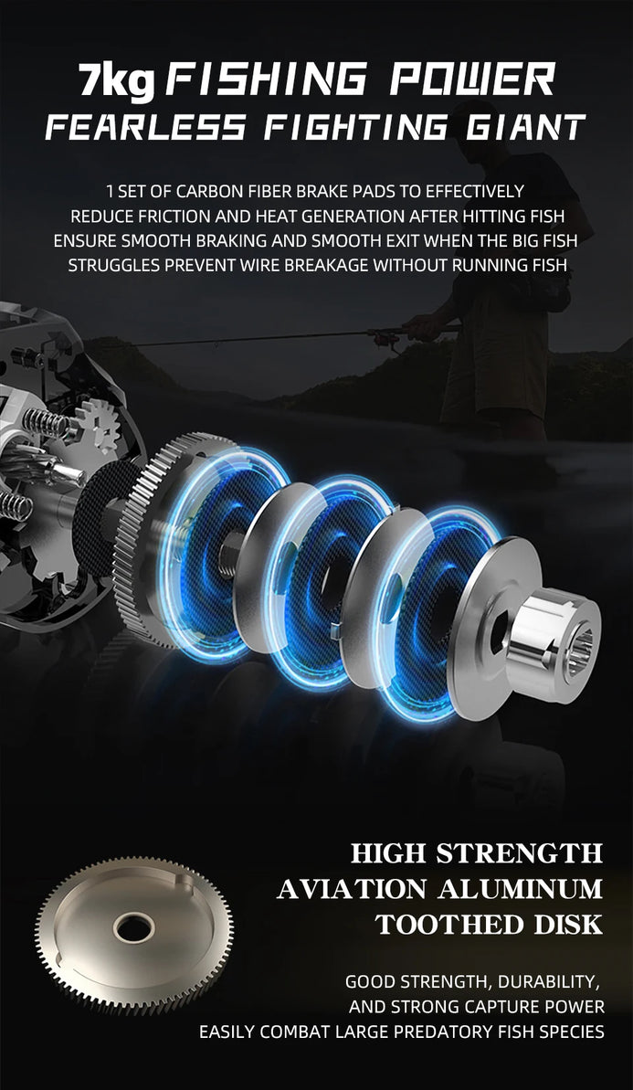 3. Micro Click Drag Setting; Provide Powerful Drag Performance, up to 7kg.