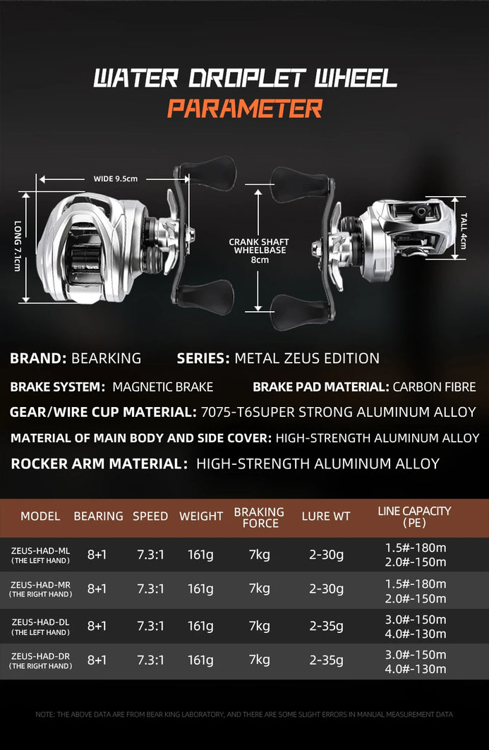 BearKing Athena Waterdrop BFS Baitcasting Reel 138g Ultra Light Carbon 8.2:1 5+1BB BearKing Zeus Pro Carbon BFS Baitcast Reel 8+1BB 7Kg Max Power 7.3:1 Histar Finesse System BFS MS-X Carbon Casting/Spinning Rod 1.68M UL/M/ML/MH 2PC