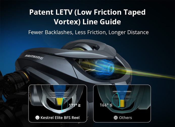 • ADVANCED LINE GUIDE - The patented LFTV (Low Friction Tapered Vortex) Line Guide decreases the angle at which the line enters the guide, limiting friction during casts. Straighter line and reduced friction results in fewer backlashes and greater distance on casts, both of which are qualities highly desirable among serious finesse anglers.