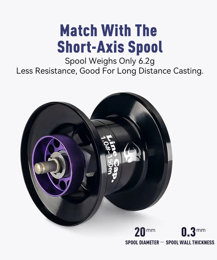 Aluminum Spool: Lightweight yet strong, designed for low-inertia startup with light lines and small baits.