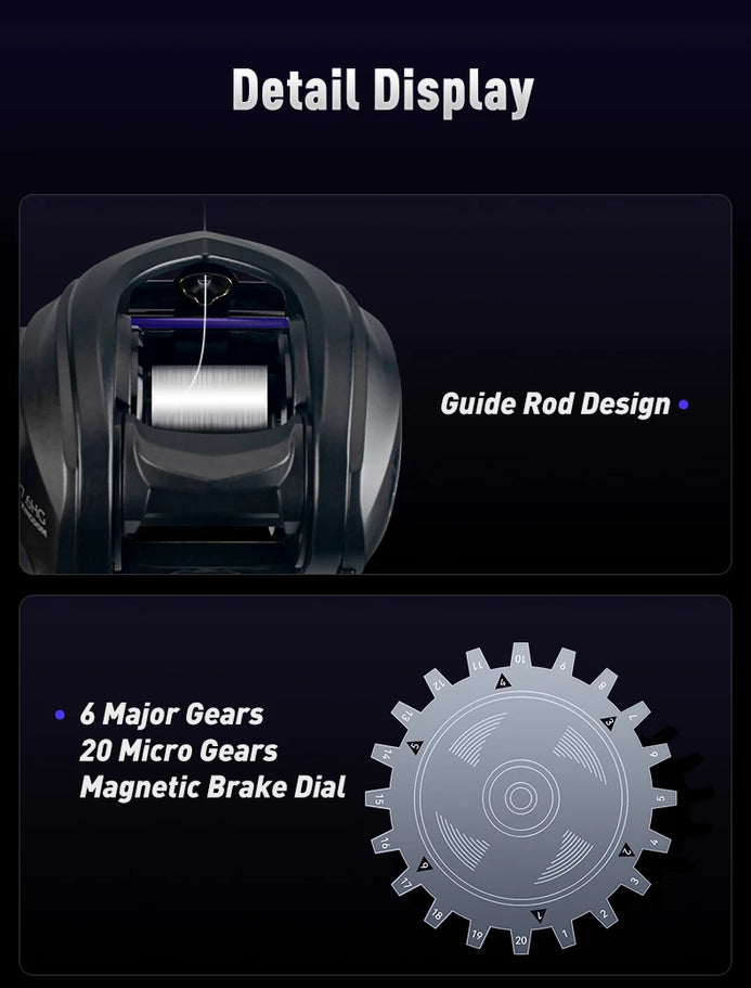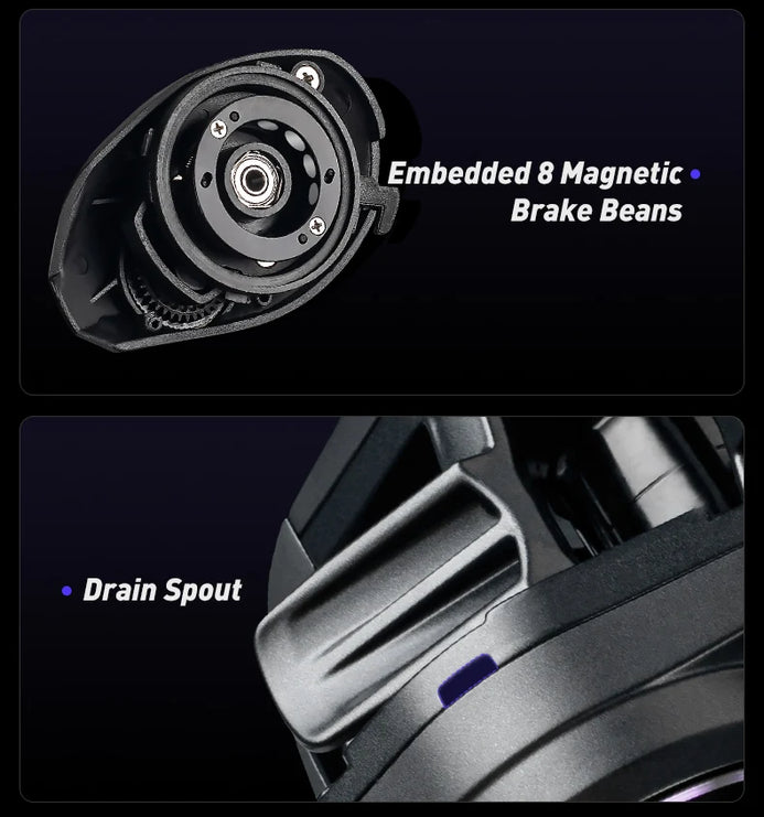 Precision Braking System: Fine-tuned magnetic brakes offer superior casting control and reduced backlash, even with ultra-light lures.