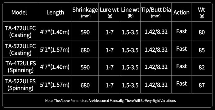 PureLure TROTA BFS Casting/Spinning Rod UL FAST 3PC 1.40m 1.53m