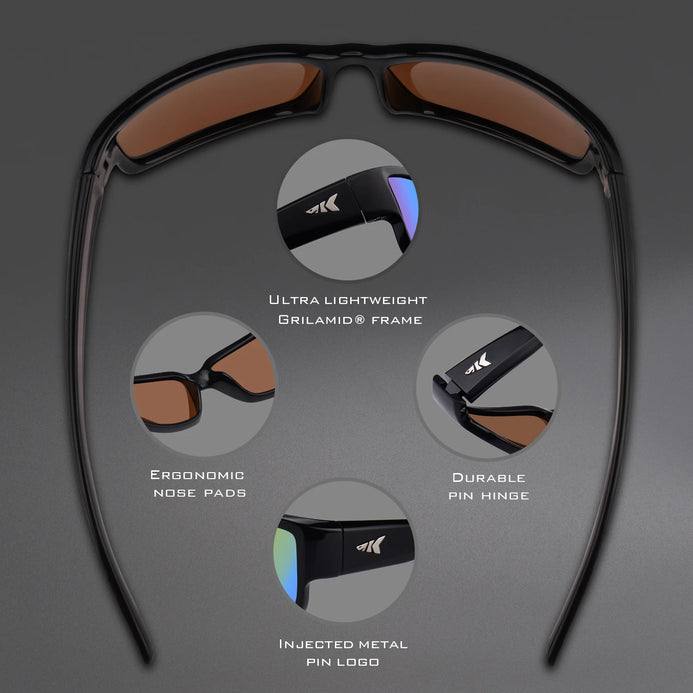 • BASE LENS COLOR and UV PROTECTION – Smoke lenses are ideal for bright sunlight with the most realistic color reproduction and also work well in medium light and partial shade. Brown lenses increase contrast and depth perception, ideal for partly cloudy to sunny conditions. Copper lenses provide excellent contrast and depth perception, best suited for moderate to low light. KastKing sunglasses block 100% of the harmful UVA and UVB rays and meet or exceed all U.S. ANSI standards