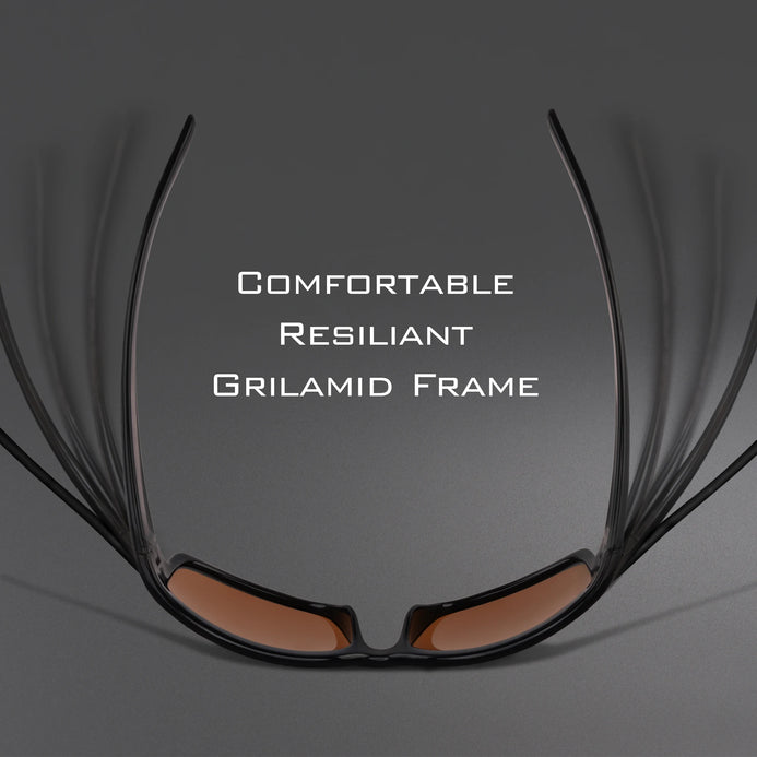 • SUPERIOR FRAMES – Made from the same Grilamid material commonly used by the military and in medical applications, our frames are lightweight, extremely flexible, and heat and UV resistant. Grilamid frames are well known for their strength, lightweight comfort, shape integrity, and impact resistance. This ultra-lightweight and malleable material translates to a very comfortable fit.