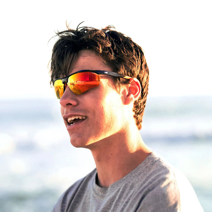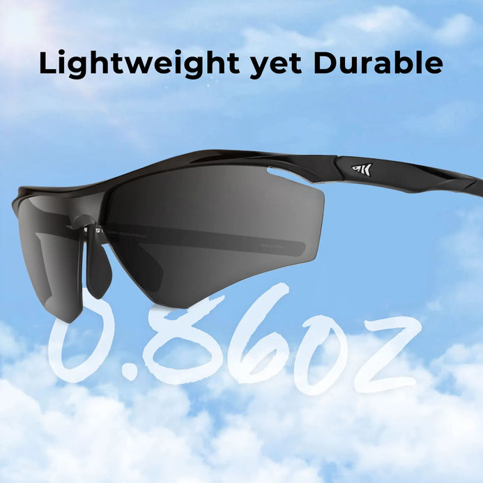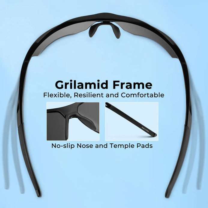 Oleophobic lens coating repels saltwater, oil, and chemicals - Polarized lenses reduce glare - Impact resistant PC lenses protect your eyes from flying objects – 0.86 oz Lightweight, durable, and comfortable Grilamid frames – Adjustable anti-slip nose and temple pads - Block 100% of the harmful UVA and UVB rays – Aggressive and Stylish design for outdoor activities