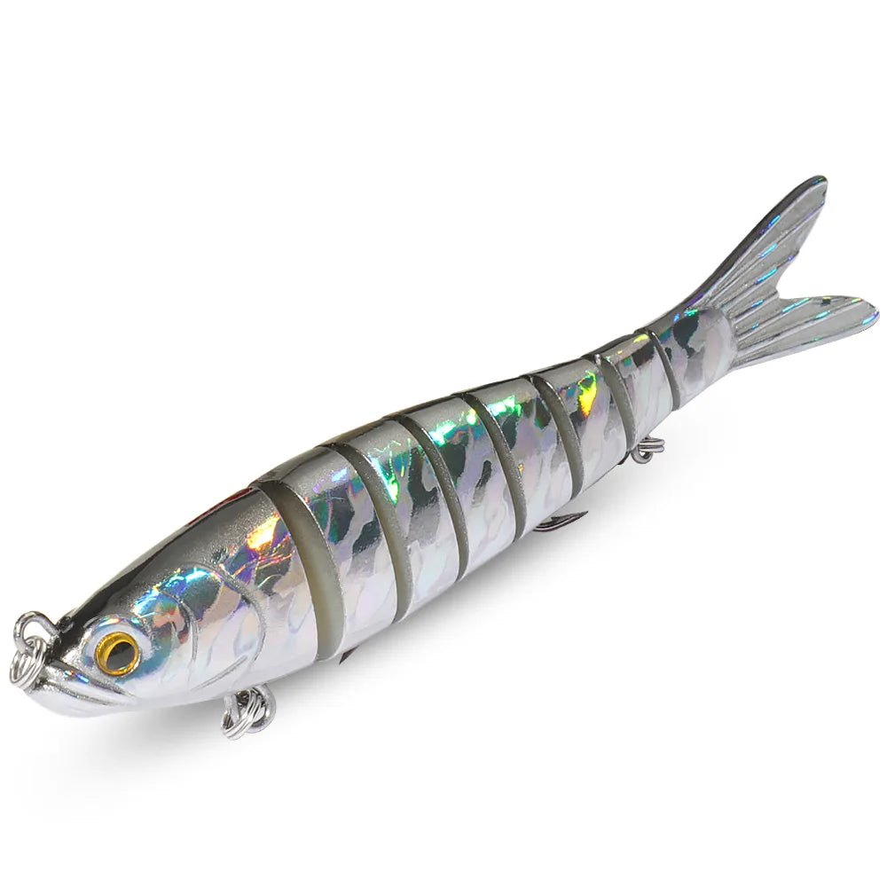 Designed with 8 segment multi-jointed body, this fishing lure can sink slowly and move flexible in water. In addition, life-like swimming actions make it attracting more catches and provoking predator fish to strike.