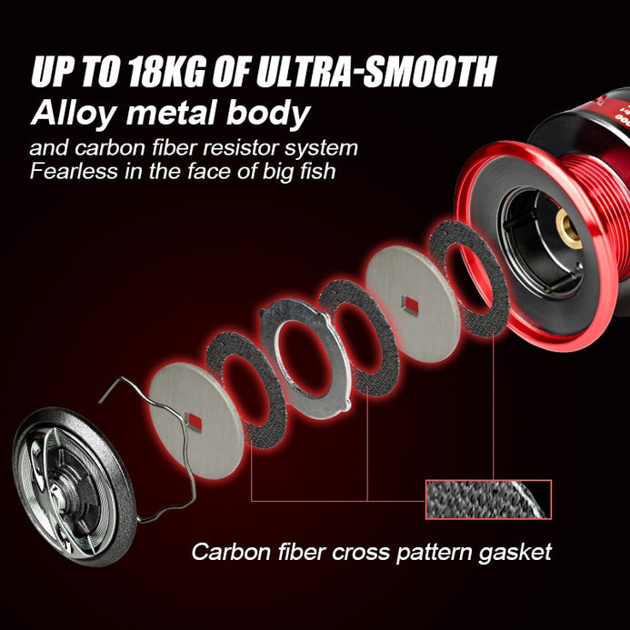 2. Up to 39.5LBs / 18KG of smooth, reliable triple disc carbon fiber drag