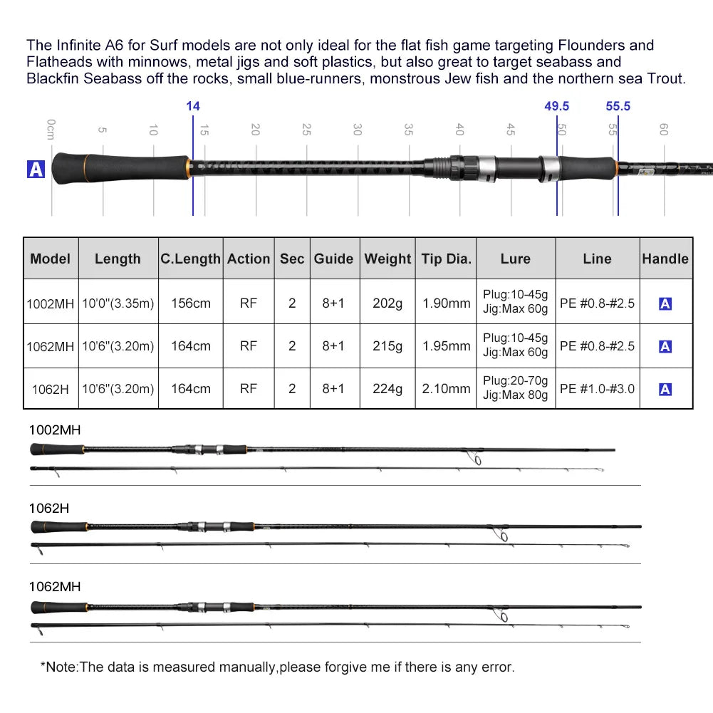 Noeby Infinite A6 Surf Spinning Rod H MH 3.35m 3.2m 10-45g 20-70g 2PC