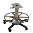 Package includes locking Workhorse swivel mount with anodized finish, high-strength polished aluminum fixed-height 4″ pedestal with 12″ round base, 316 electro-polished stainless steel 28″ round footrest, and black powder-coated 5-legged deck base. Overall height 25-1/2″.