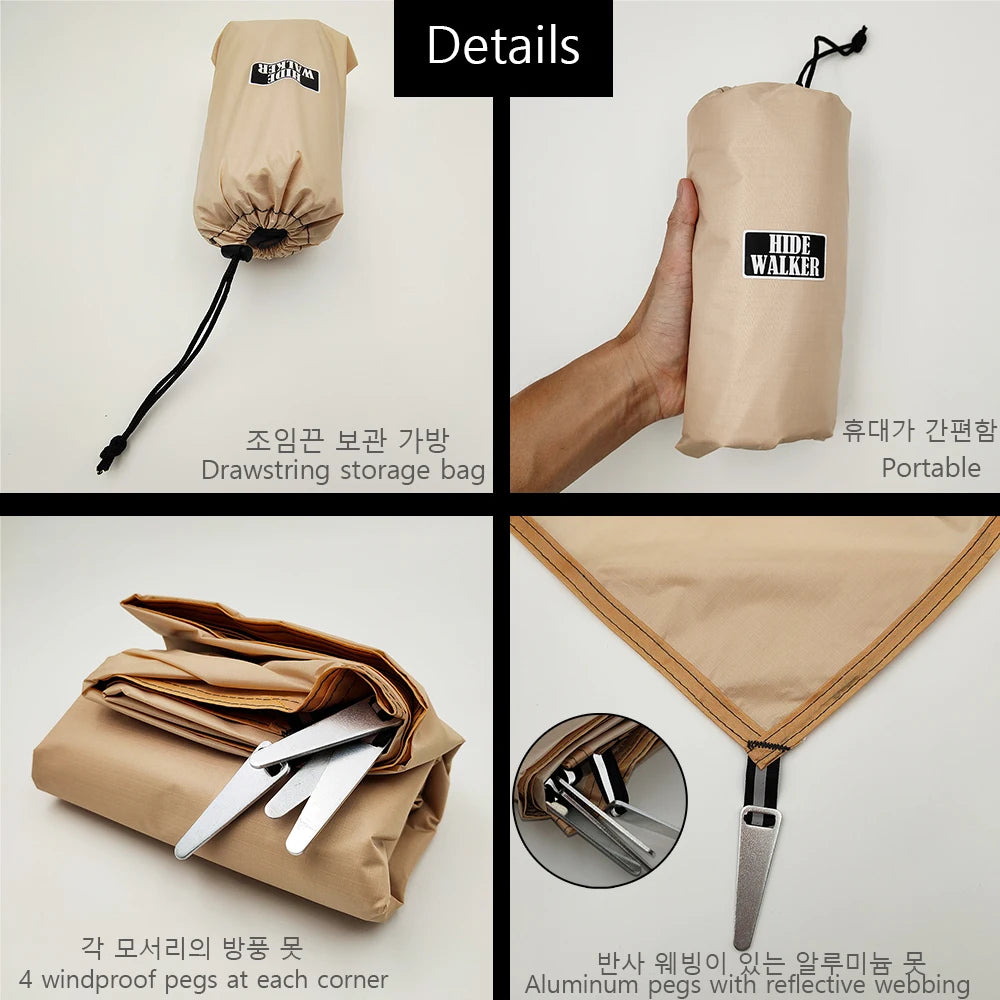 Hide Walker 3x3 3D Outdoor Waterproof Camp Footprint Hide Walker Ultralight Tent Footprint with Windproof Stakes 1/2 person Multifunctional Tent Footprint