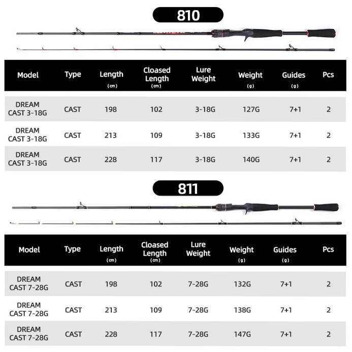 MiFiNE DREAM CAST Casting Rod 1.98M/2.13M/2.28M Power ML/M 2PC