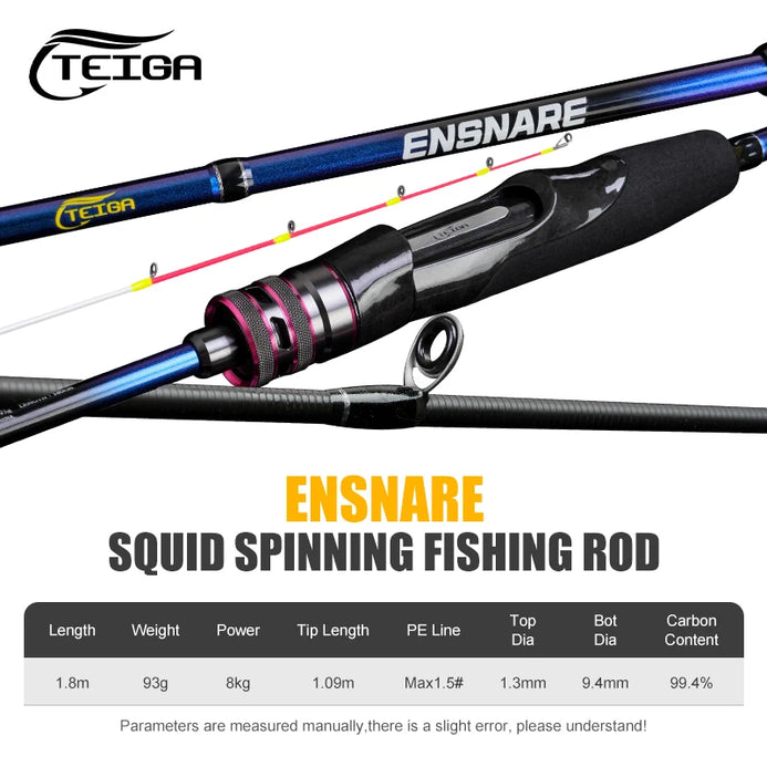 TEIGA ENSNARE 180cm OMORI RIG Fishing Rod Full Carbon Fiber Solid Tip Spinning Fishing Lure Rod