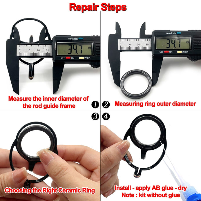 [ Easy to install ] Available in 13 sizes. First you need to measure the inner diameter of the rod guide, and then select the correct outer diameter of the ceramic ring. The ceramic ring can be sanded to the exact size and epoxy glued in place. Leave the rod until dry to ensure it is secure and ready to use.
