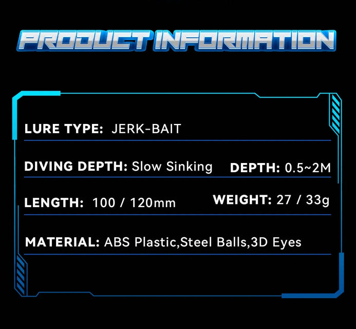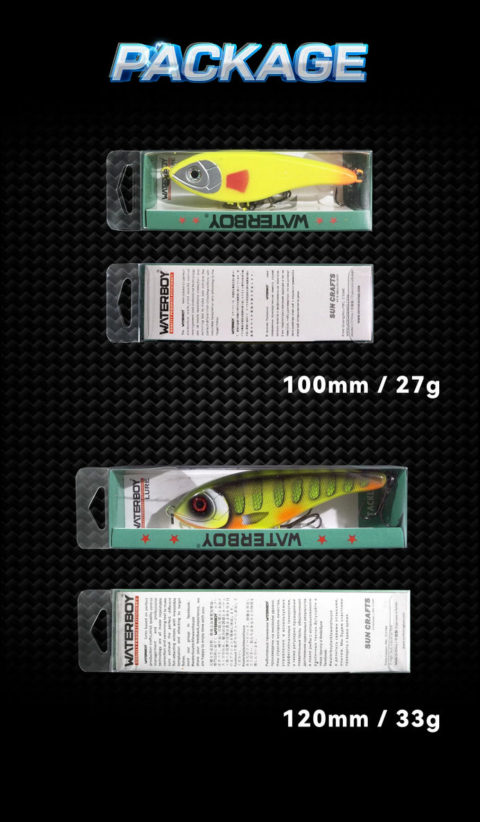 WATERBOY Musky Buster 10cm/27g 12cm/33g Slow Sinking VIB LiplessJerkbait