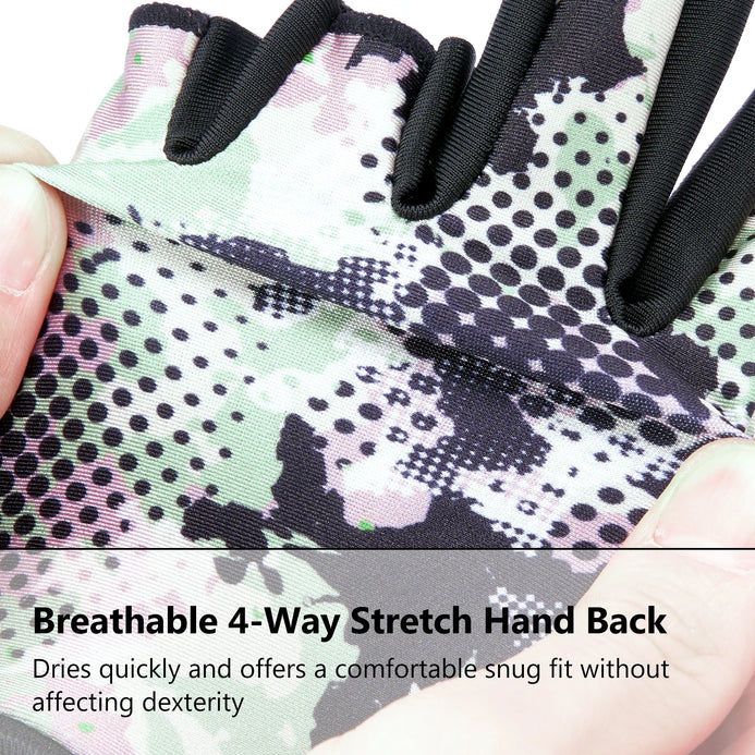 The heavy-duty construction and the double-layered microfiber leather palm and fingers help provide outstanding grip for tracing line and handling slippery fish as well as protecting wet hands from razor sharp gill rakers and fin spikes