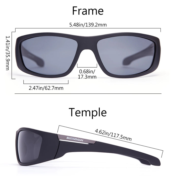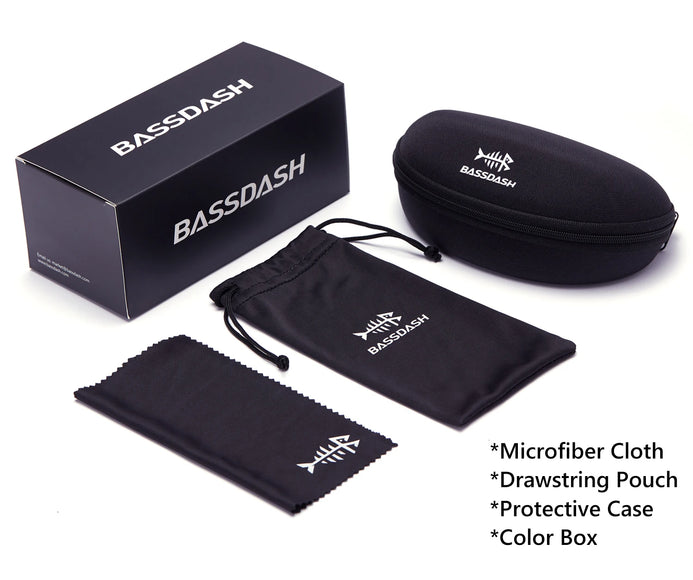Head out to the great outdoors with the BASSDASH V02 Polarized Sunglasses. Sport style design deliver a comfortable fit, you can enjoy while out for fishing, hunting or hiking. TR90 nylon frames offer consistent fit and flexibility. Lightweight and Impact-resistant Triacetate lenses provide you with total optical clarity. Polarized lenses reduce glare and overall optical distortion which increases visual clarity and decreases eye strain.