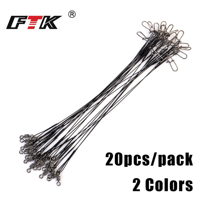 FTK 20pcs 16/20/25cm Stainless Steel Wire Leader With Swivel