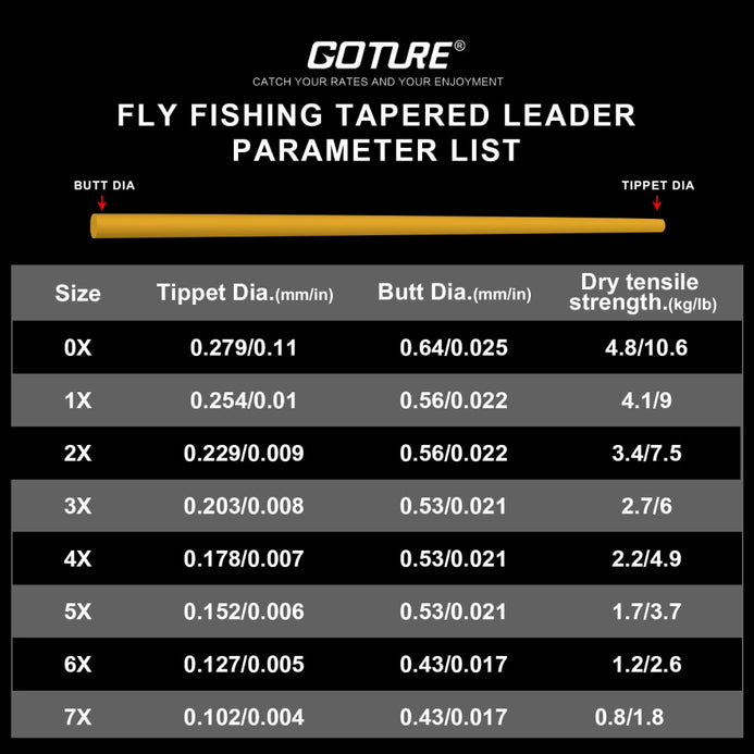 Goture 5pcs/Set Tapered 9FT/2.74M Fly Fishing Leader with Loop