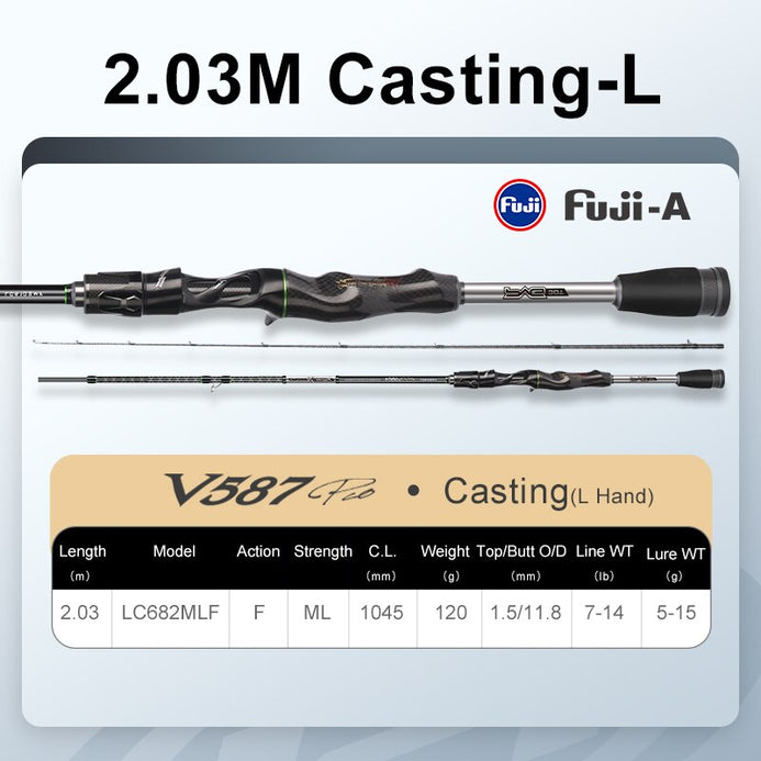The Histar V587 Spinning/Casting Crossline Rod is a two-piece rod designed for optimal casting accuracy and strength. As a fast action rod, it is perfect for experienced anglers and with available lengths of 1.95m/6.39ft to 2.59m/8.49ft, making it an ideal choice for surf fishing and lake fishing alike.