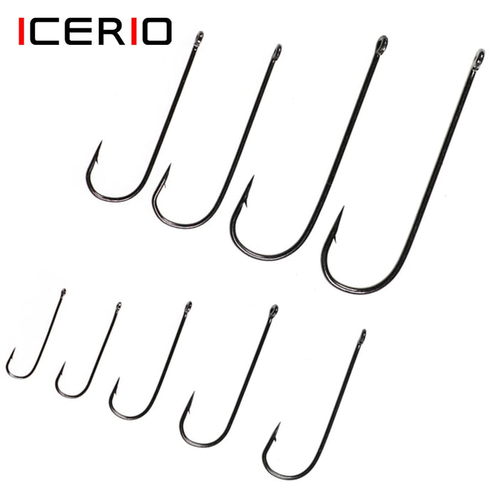 ICERIO 50pcs/lot Size 10 4 2 2/0 3/0 Aberdeen Long Shank Fish Hook