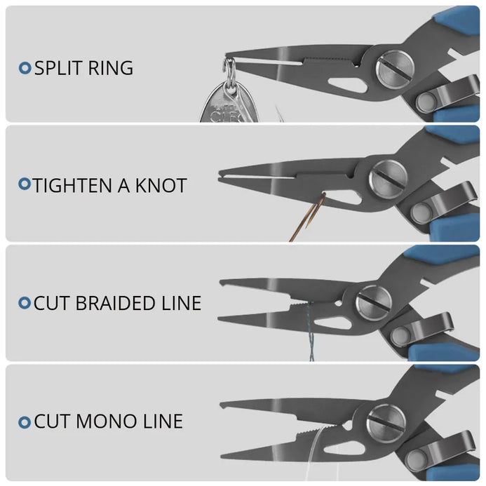 3. The precision V-shaped tip design opens split rings wide to allow for quick and easy hook changes.An integrated cinch holes allow you to safely tug on a hook to cinch down a knot.ᅠ