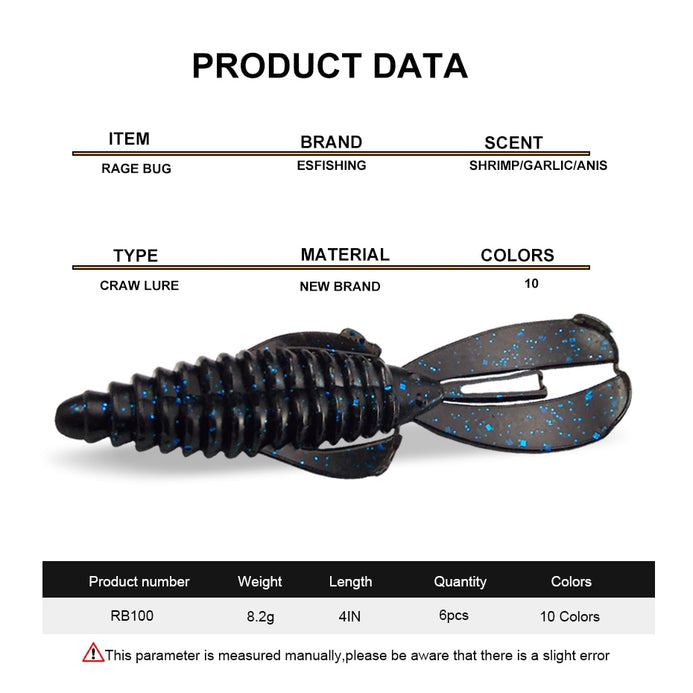 KesFishing RB100 6Pcs/Lot 8.2g Soft Plastic Rage Bug Craw