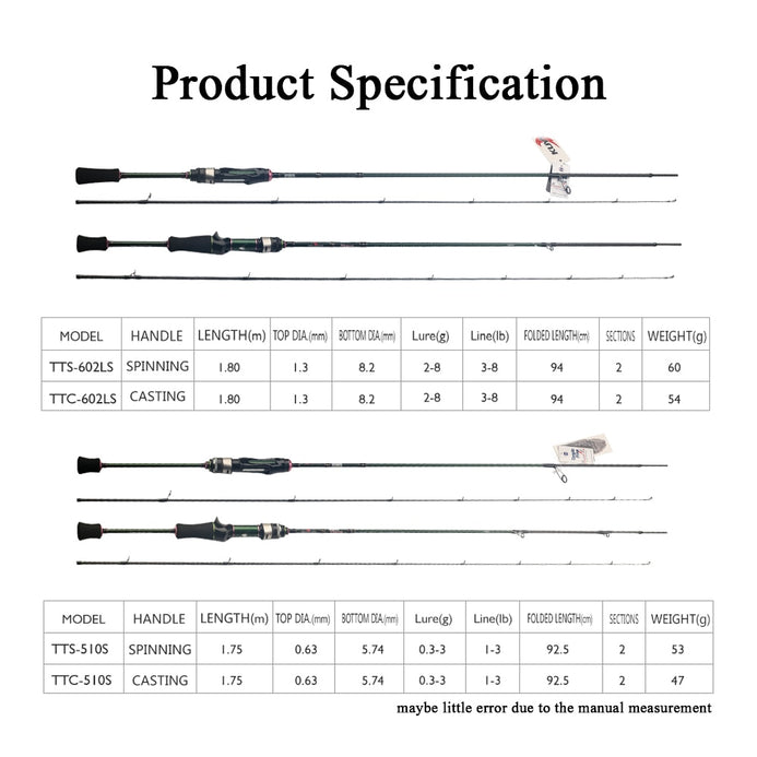 TTC510S,1.75m Length(5'10"), Casting, 0.3-3g Lure, Fast Speed Action.