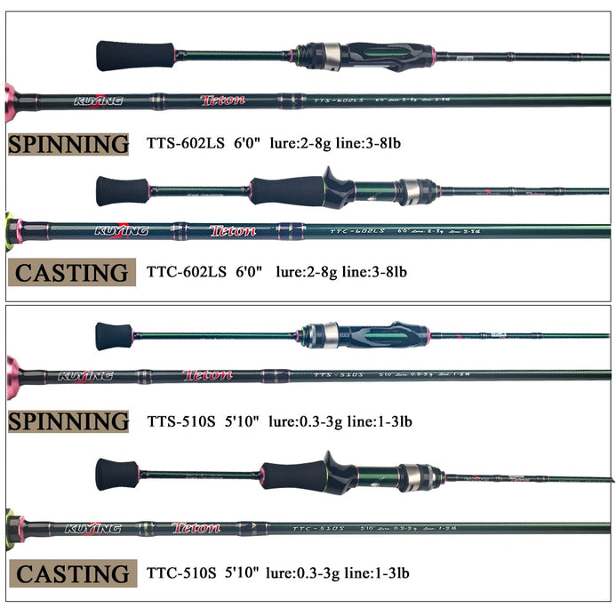 Kuying Teton 1.75m/1.8m 2PC Carbon Spinning/Casting Fast Action Rod