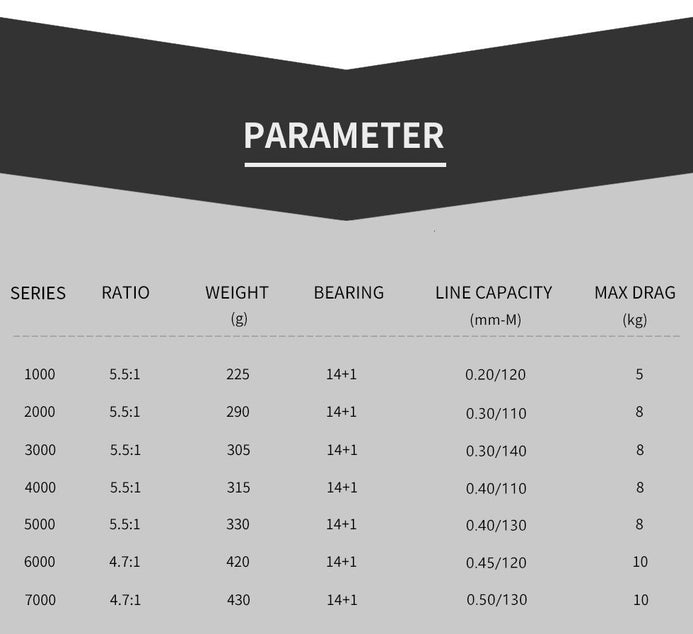 Sharking 5000 | Weight: 330g | Ratio: 5.5:1 | Max Drag: 8kg | Line Capacity: 0.40mm/130m