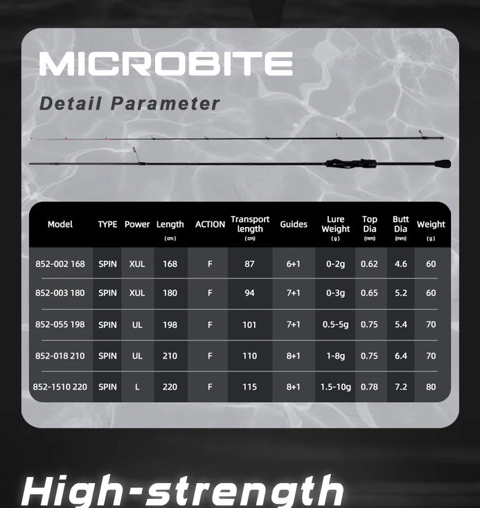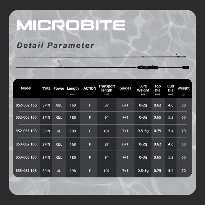 MiFiNE MICROBITE Spinning Rod 2PC XUL-UL 40T/46T 1.68m-1.98m