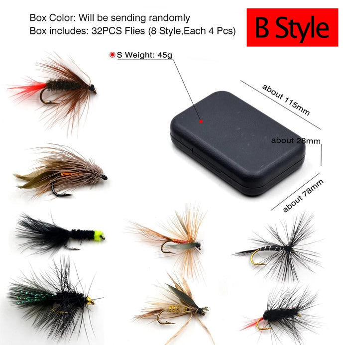 1Pcs Box+32PCS Flies (8 Style, each 4 Pcs)